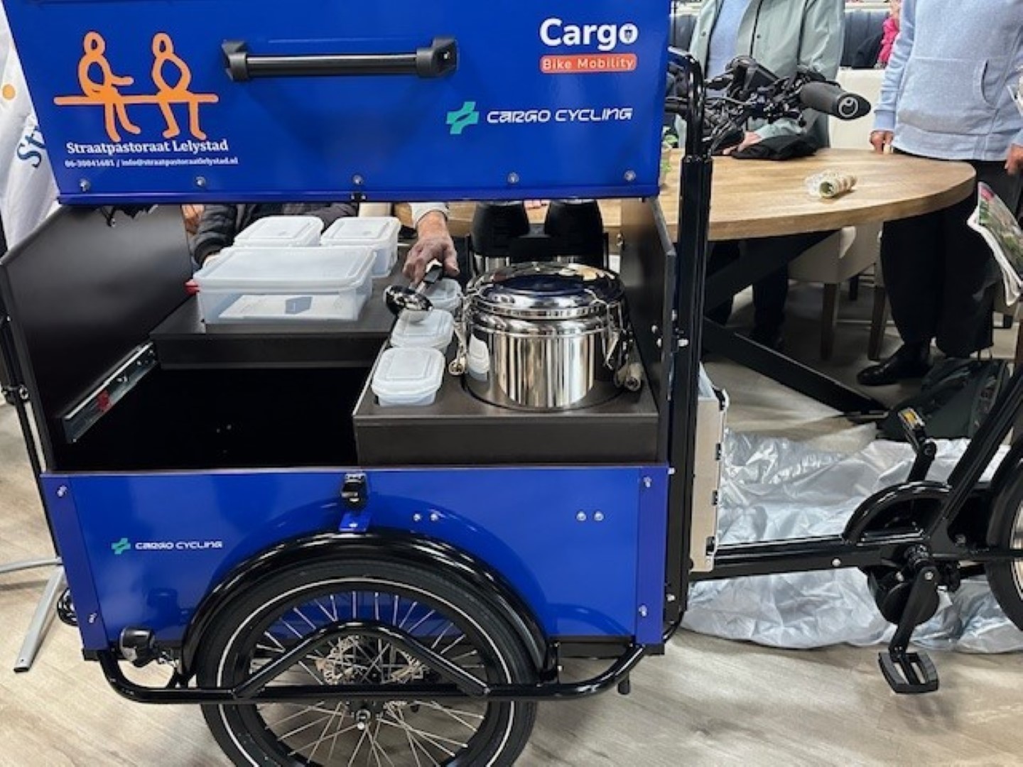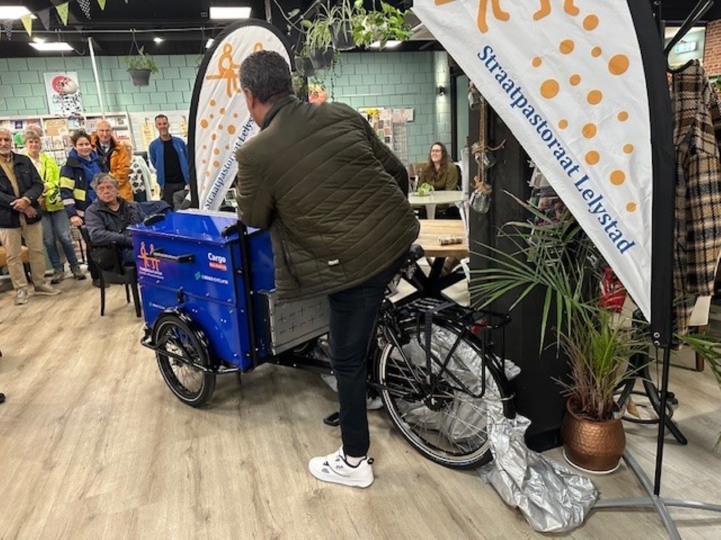 Maandag 14 oktober 2024 vond de onthulling plaats van de nieuwe bakfiets voor het Straatpastoraat Lelystad.
