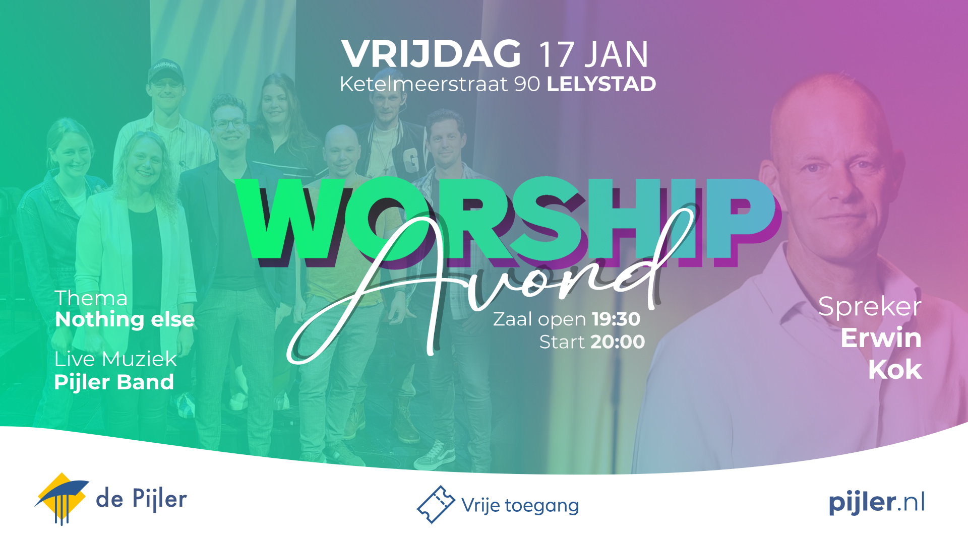 Vrijdagavond 17 januari is er een prachtige Worship avond in de Pijler. Een moment om in een kleinere setting je helemaal te focussen op God.