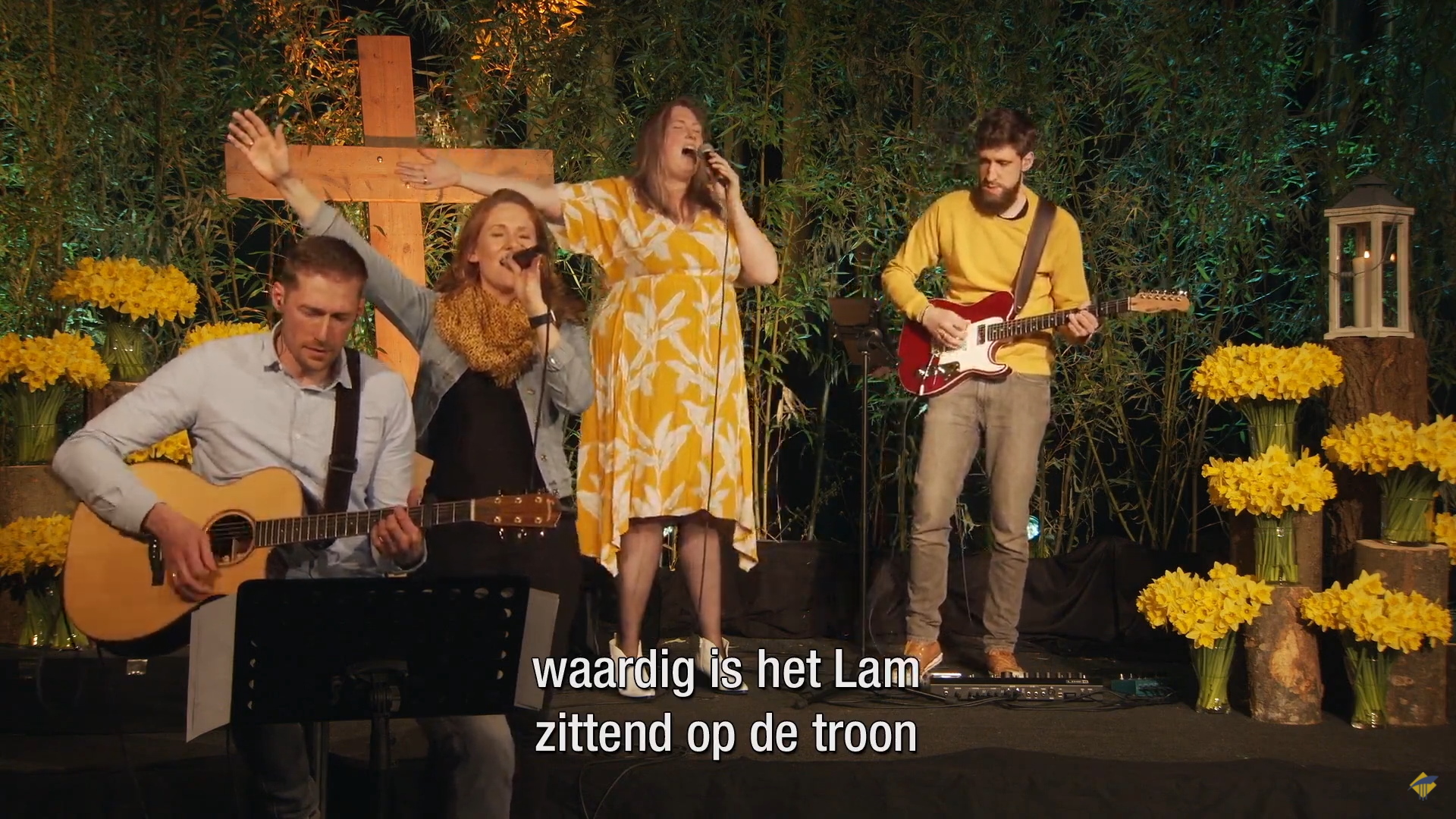 Veel muzikale ondersteuning ook vanmorgen. Zo luisteren en zingen we onder andere O praise the Name, Zing – Hij is opgestaan en Hij leeft, Wat een heerlijke Naam, Waardig is het Lam en The Blessing-Fix You!
